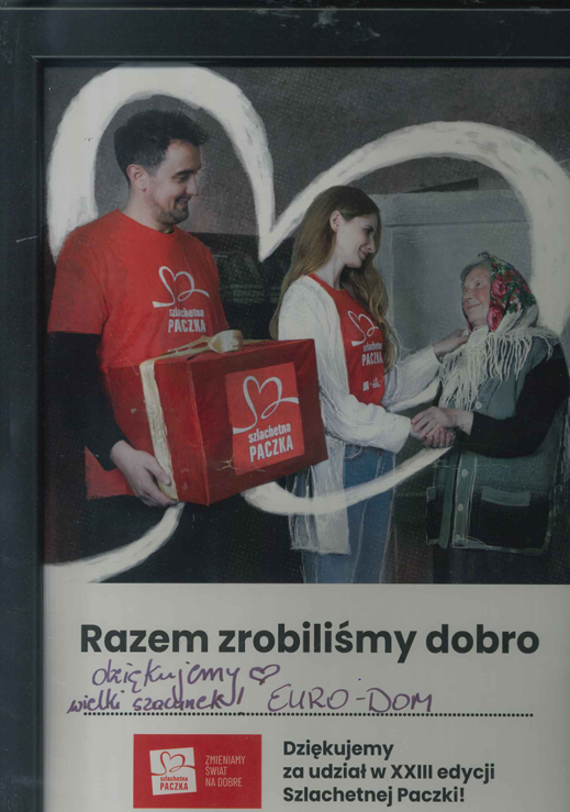 W EURO-DOM.CO wierzymy, że pomaganie ma sens. Wzięliśmy udział w XXIII edycji Szlachetnej Paczki, wspierając osoby, które potrzebują pomocy i wsparcia w trudnych chwilach.