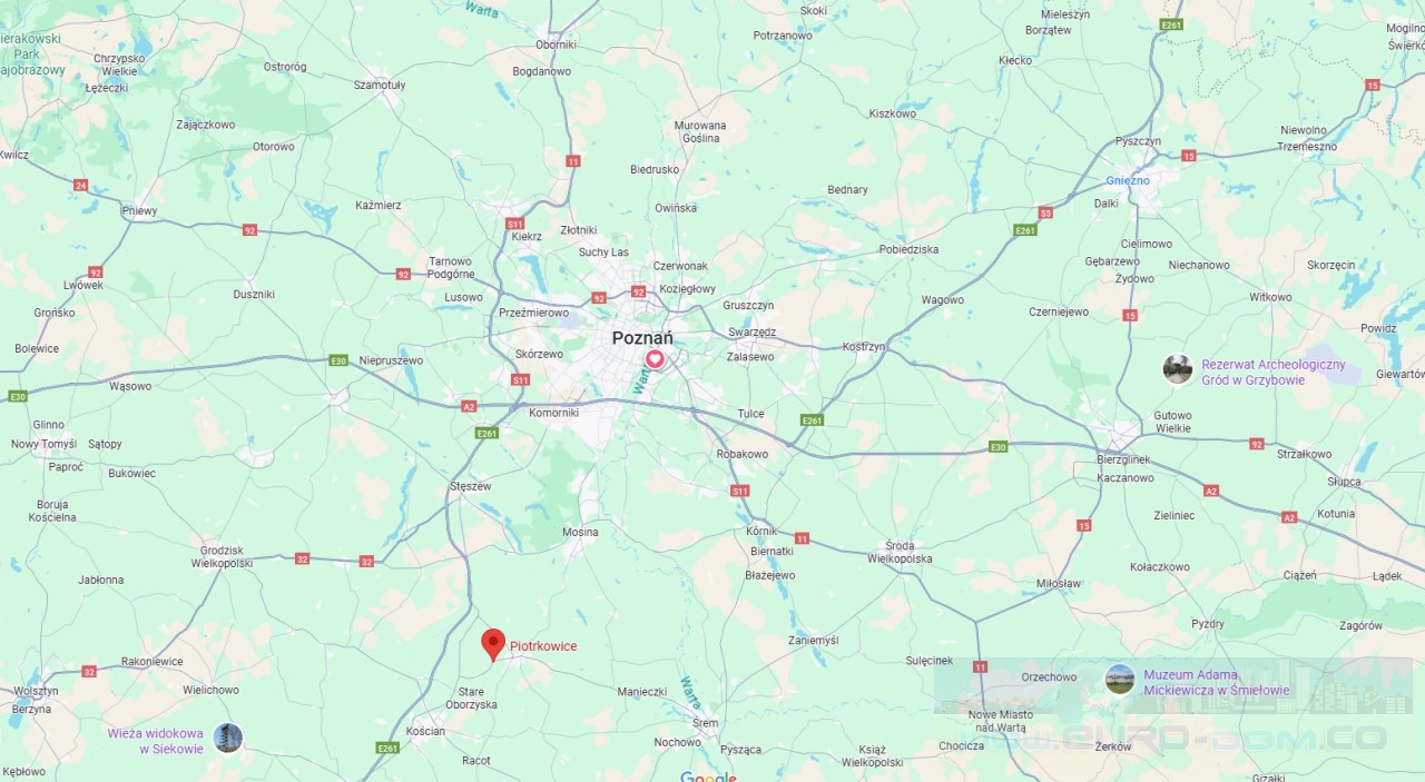 Działka położona jest w miejscowości Piotrkowice, bezpośrednio graniczy z Czempiniem. Gmina Czempiń usytuowana jest w centralnej części województwa wielkopolskiego i wchodzi w skład strefy rozwoju aglomeracji poznańskiej - od stolicy Wielkopolski dzieli ją 35km. Ważnym atutem jest możliwość szybkiego dojazdu do Poznania, Kościana i Leszna. Wszystkie powyższe cechy, uzupełnione bliskością węzła trasy S5 sprawiają, że z Czempinia jest wszędzie blisko i jest to miejsce idealne do zamieszkania. Przez Czempiń przebiega także nowoczesna linia kolejowa E-59 relacji Poznań - Wrocław. Od niedawna na terenie gminy Czempiń funkcjonuje także autobusowa komunikacja miejska. W najbliższej okolicy działki odnajdziemy sklepy spożywcze, piekarnie, paczkomat, a także stację kolejową.