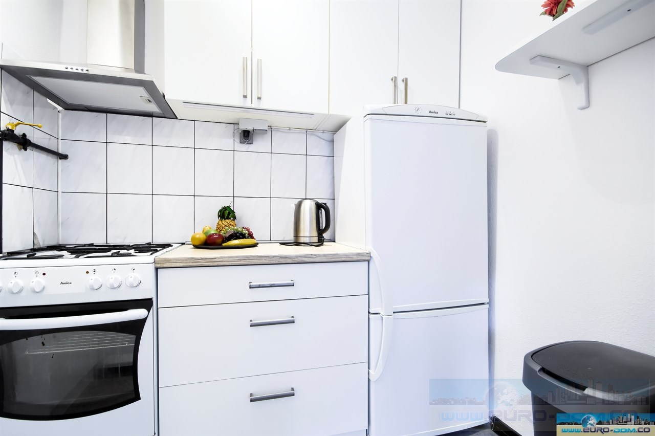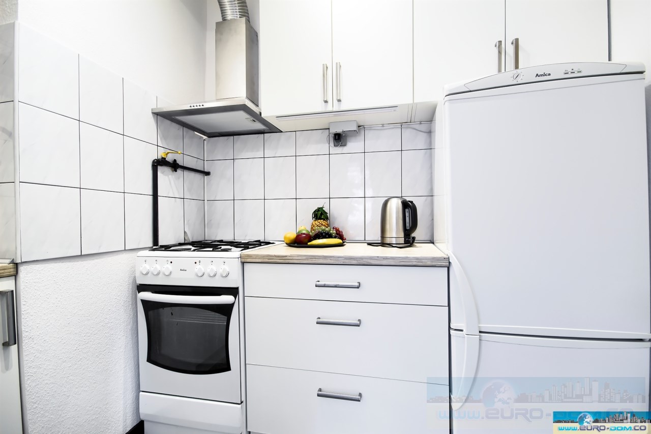 Lokal znajduje się na 1 piętrze w 4 piętrowym budynku. Pokój posiada w duże okna, dzięki czemu jest dobrze doświetlone. Jest tam duża, komfortowa kanapa, szafka RTV z dużym telewizorem. Dużym atutem mieszkania jest duża, pojemna szafa typu komandor. Dodatkowo znajduję się tam stół kuchenny i 4 krzesła. Osobna kuchnia z niezbędnym sprzętem AGD (kuchenka z piekarnikiem, lodówka, okap). W łazience znajduje się prysznic, pralka jak i umywalka z szafką.