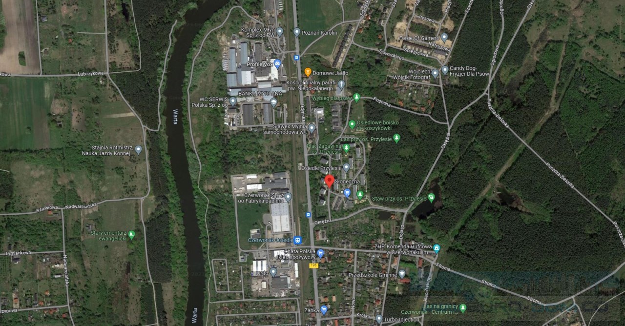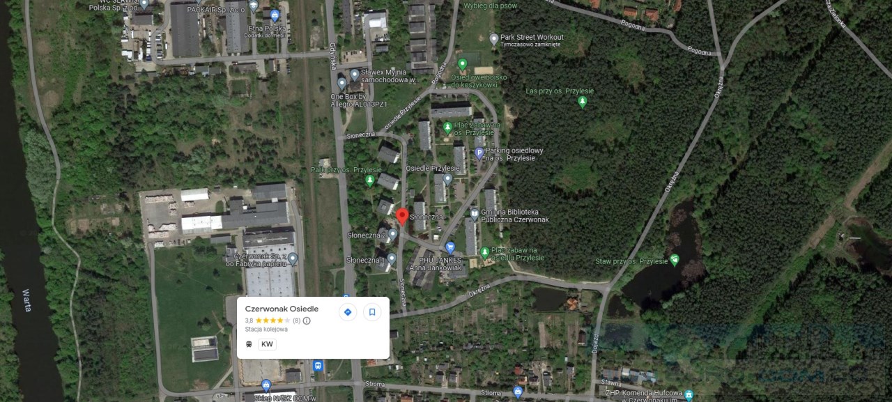 Mieszkanie znajduje się przy ulicy Słonecznej w Czerwonaku. Okolica wokół bloku jest bardzo malownicza ze względu na bezpośrednie sąsiedztwo terenów zielonych. Pełny i łatwy dostęp do całej infrastruktury handlowo - usługowej. W pobliżu znajduje się przystanek autobusowy, jak i przystanek kolejowy co zapewnia bardzo dobrą komunikację z Poznaniem.