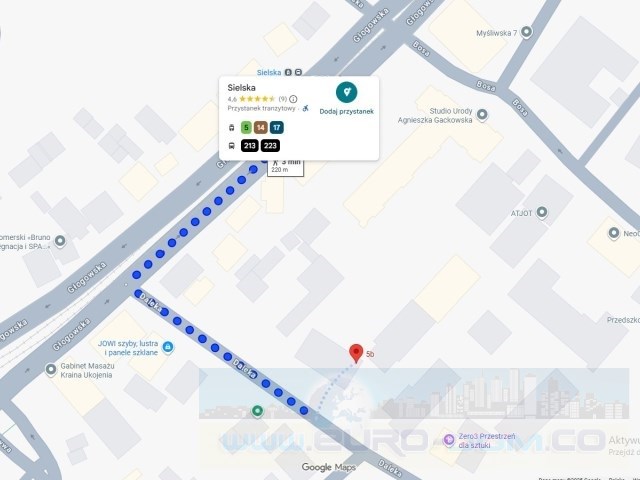 Doskonała komunikacja – w kilka minut można dotrzeć na Dworzec Główny i do centrum miasta. Przystanki tramwajowe i autobusowe znajdują się w odległości 120 metrów od budynku.