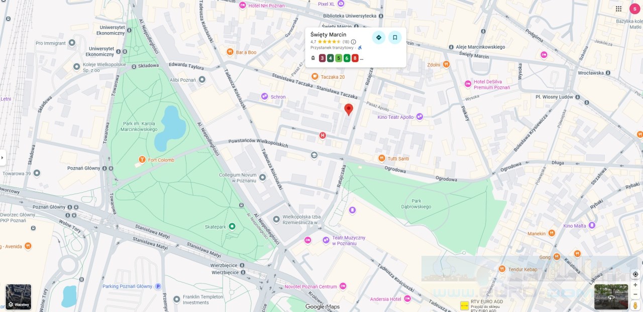 Komunikacja miejska – węzły tramwajowe i autobusowe (Plac Wolności, Św. Marcin) pozwalają na błyskawiczny dojazd w każdą część miasta.