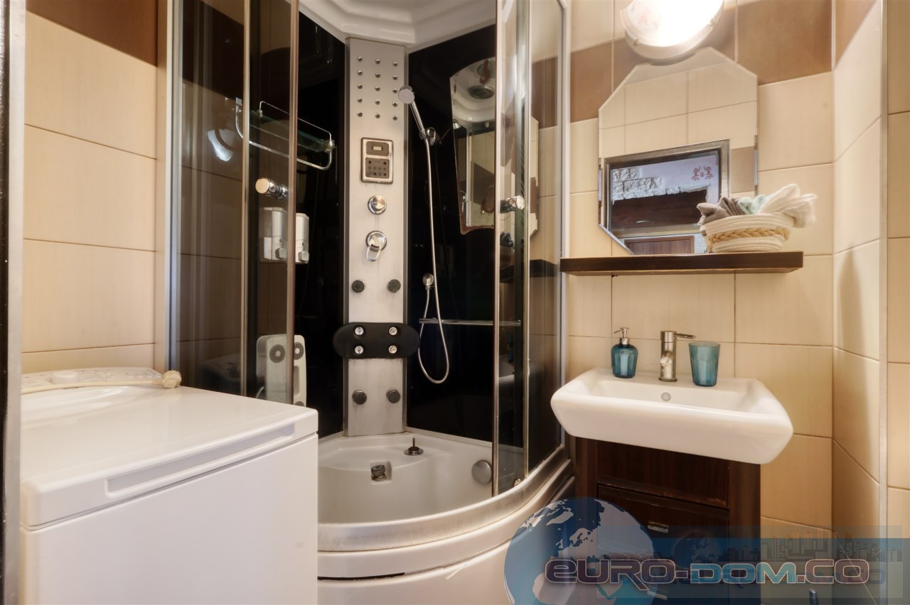 | Wyposażenie łazienki | kabina prysznicowa, lustro, pralka, umywalka, WC |
