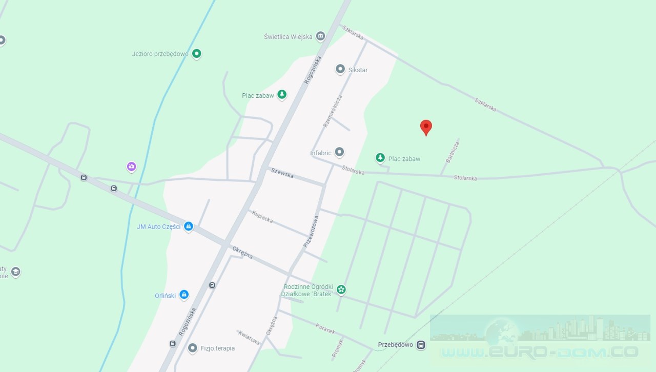 Dom znajduje się przy ulicy Sadowej w Przebędowie. Jest to nowe osiedle domów w zabudowie szeregowej. Okolica wokół bloku jest bardzo malownicza ze względu na bezpośrednie sąsiedztwo terenów zielonych. W niedalekich odległościach znajduje się pełny dostęp do całej infrastruktury handlowo - usługowej, tzn do sklepów, placów zabaw, przystanku kolejowego itp. Dodatkowo w pobliżu znajduje się przystanek autobusowy, co również zapewnia łatwą komunikację z Murowana Gośliną ale i z Poznaniem.