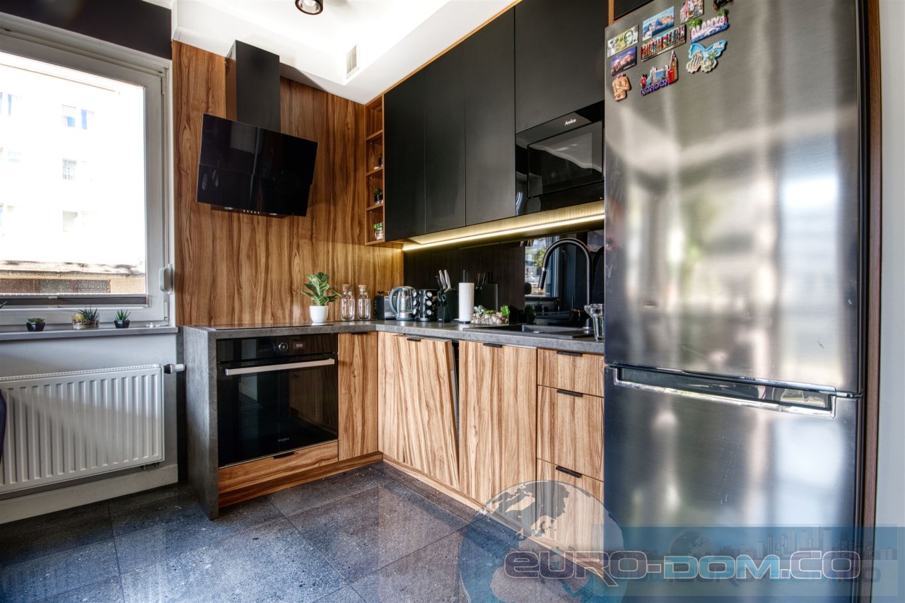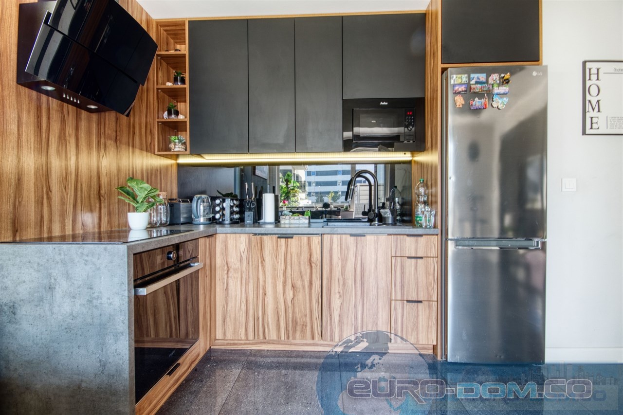 • Aneks kuchenny – meble w zabudowie, wyposażenie w komplet nowoczesnych sprzętów AGD: zmywarka, piekarnik, lodówka, mikrofala, płyta grzewcza.