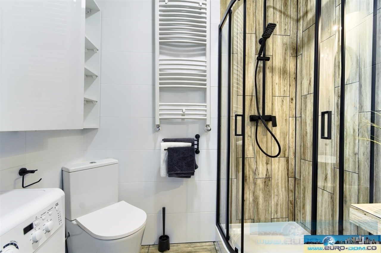 | Wyposażenie łazienki | kabina prysznicowa, lustro, pralka, prysznic, umywalka, WC |