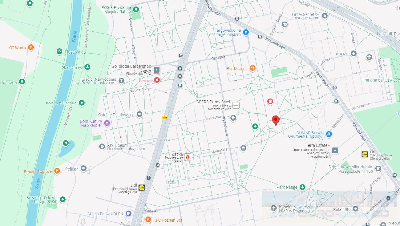 Mieszkanie jest położone w pobliżu centrum handlowego Posnania. Dodatkowo na osiedlu znajdują się sklep Chata Polska i wiele innych sklepów usługowych jak i restauracji. W niedalekiej odległości znajduję się dużo terenów zielonych, siłownia zewnętrzna, a Jezioro Malta znajduję się 2 km od osiedla. Jest to idealna propozycja dla osób ceniących spokój i wygodę. W niedalekiej odległości znajduję się przystanek tramwajowy Os Piastowskie oraz przystanek autobusowy Os. Oświecenia.