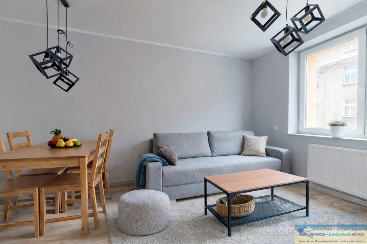 Mieszkanie wykończone w stylu nowoczesnym o powierzchni 30m2. Zaletą lokalu jest funkcjonalny układ pomieszczeń. Pełne wyposażenie mieszkania: lodówka, piekarnik, pralka, meble. Dwa pokoje w pełni wyposażone. Jasne, przytulne i ciche mieszkanie. Istnieje też możliwość korzystania z piwnicy.