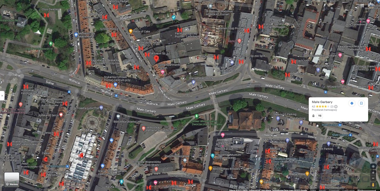 W najbliższej okolicy pełna infrastruktura handlowa i usługowa. Doskonałe połączenie z komunikacja miejską, liczne przystanki tramwajowe i autobusowe. Pod kamienicą miejsca parkingowe. Nieruchomość zlokalizowana w centrum Poznania ale w spokojnej jej części.