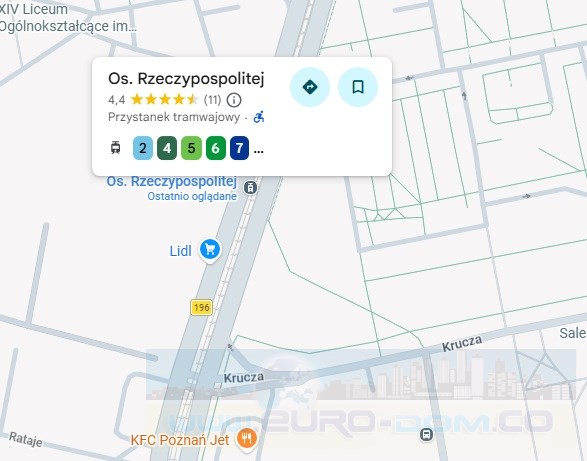 Świetne połączenie z całym miastem – bliskość głównych arterii komunikacyjnych umożliwia szybkie i wygodne dotarcie do centrum miasta, jak również na obrzeża czy w inne części Poznania. Liczne linie autobusowe i tramwajowe (około 400 m) zapewniają sprawny transport publiczny, a szybki wyjazd z osiedla w kierunku różnych części miasta oraz autostrady A2, jest dużym plusem dla osób ceniących sobie mobilność i wygodę podróżowania.