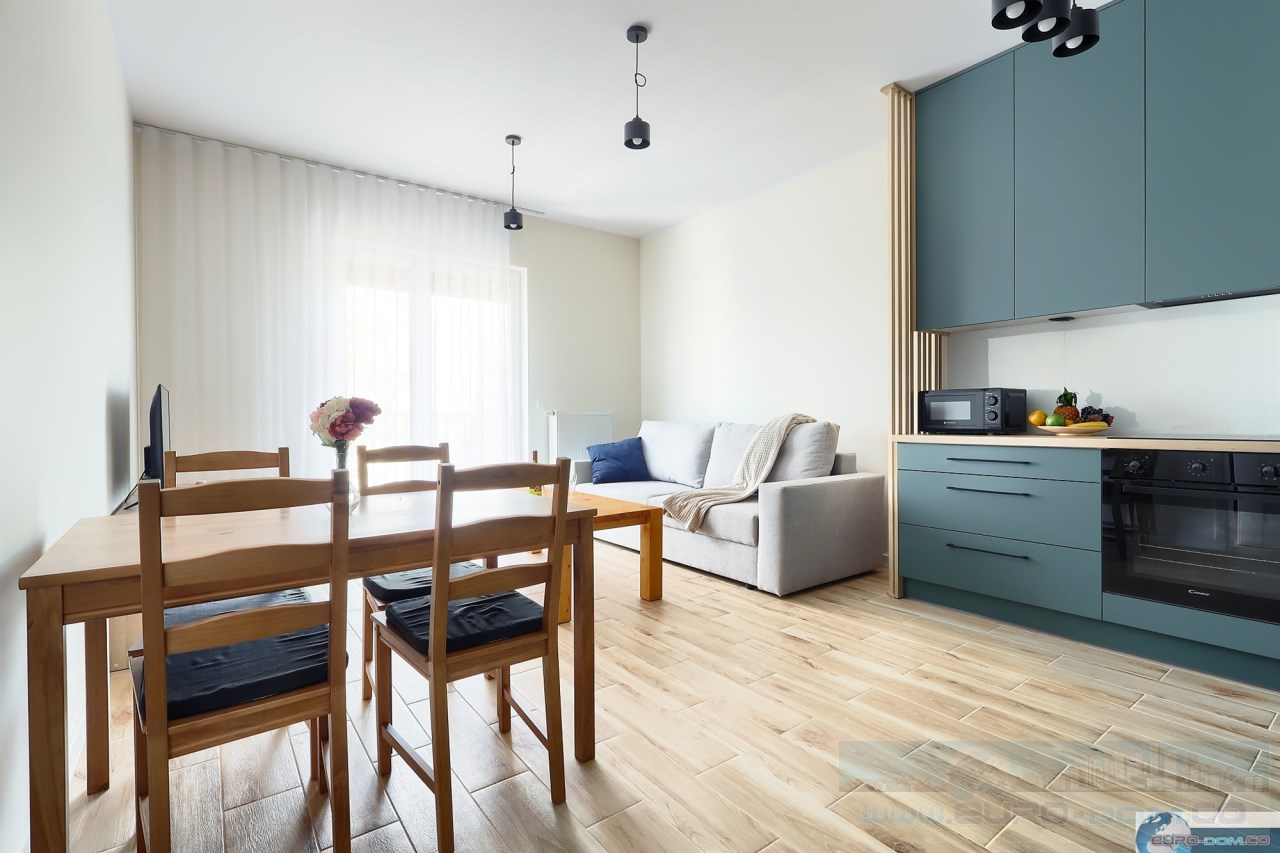 Umeblowanie mieszkania zgodne z fotografią. Mieszkanie jest z ekspozycją północno-wschodnią, dzięki czemu mieszkanie otrzymuje dużą ilość naturalnego światła do południa. Okna wykonane są z PCV.