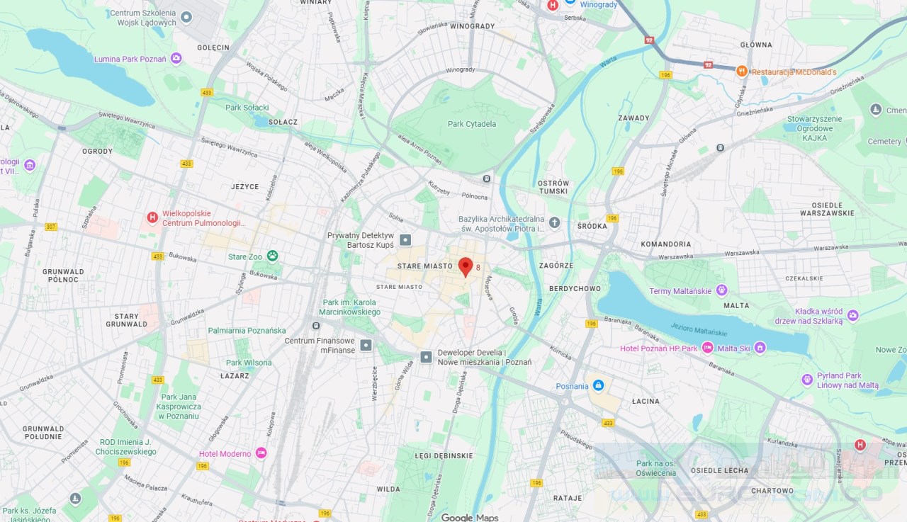 Apartament znajduje się na Starym Mieście w Poznaniu, co zapewnia łatwy dostęp do głównych arterii komunikacyjnych, centrów handlowych, restauracji, kawiarni oraz instytucji kulturalnych.